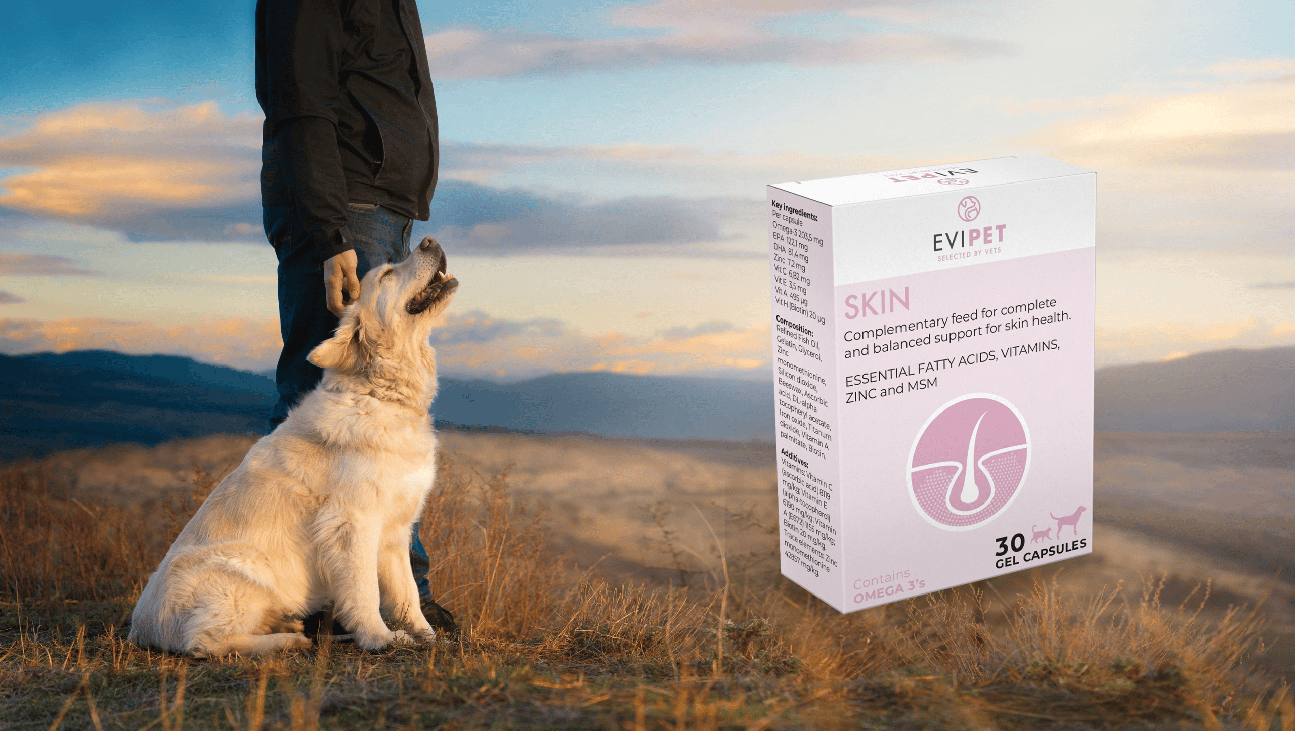 Specially formulated for support of healthy skin and shiny coat. With omega-3, zinc, vitamin E, vitamin A, vitamin C and biotin.
